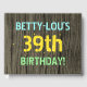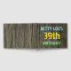 Este divertido diseño de libros de cumpleaños incluye un mensaje como "¡BETTY-LOU'S 39th BIRTHDAY!", donde el nombre puede ser personalizado. El fondo está decorado con un estilo rústico, marrón y falso de aspecto de grano de madera. El texto del mensaje de personalizable presenta colores como azul, amarillo y verde, y tiene un aspecto inspirado en el de las letras pintadas y estampadas. Un libro de visitas con temas de cumpleaños como este podría ser usado para que los asistentes puedan dejar mensajes en un fiesta que está siendo retenido por alguien que está celebrando su 39º cumpleaños. [~Z0000320]