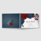 magnífico libro de invitados botánico azul marino y flores rojas.