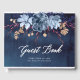 Este libro de bodas tiene un fondo de pizarra de nave y un motivo floral azul. Es totalmente personalizable y viene con papel boda que se encuentra en esta tienda.