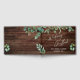Este cálido y rústico diseño presenta un moderno tipo de letra de escritura a mano que se utilizó para crear un gráfico que decía "Guía Boda". El fondo se cubrió con una imagen de madera marrón y se acentuaron con imágenes de eucalipto verde. Es perfecto para tu granero, boda casual o de campo. Utilice los campos de plantilla para agregar sus datos personales. // 151 //