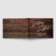 Este cálido y rústico diseño presenta un moderno tipo de letra de escritura a mano que se utilizó para crear un gráfico que decía "Guía Boda". El fondo estaba cubierto por una imagen de madera marrón. Perfecto para tu granero, boda casual o de campo. Utilice los campos de plantilla para agregar sus datos personales.// 151 //