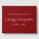 Este minimalista libro de visitas al funeral o al servicio conmemorativo muestra el mensaje "Siempre estarás con nosotros", y el nombre personalizado y las fechas de nacimiento y muerte del individuo que ha fallecido, en texto blanco con un fondo rojo. Se podría usar para registrar recuerdos aficionados de alguien que ha fallecido recientemente.