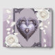 Marco floral con corazón y rosas blancas - gótico romántico. Las rosas blancas y los pétalos dispersos adornan el marco, creando un ambiente romántico y delicado. En la parte inferior, un corazón decorativo con detalles delicados aporta un toque de elegancia. La paleta de colores está dominada por tonos blancos, violetas y grises.