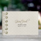 boda de marfil de moda, cartel de invitado en el libro hecho con un aspecto de lino con cinta de marfil y metalizado rivet con aspecto de unión. Texto gráfico de tono dorado que lee el Libro de invitados. Personalice el texto del personalizado para adaptarlo a sus necesidades de boda. Bonito mantenimiento.