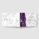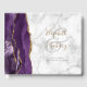 Este elegante libro de bodas presenta un diseño de ágata color morado adornado con un falso purpurina de oro. Personalizar fácilmente el texto de color dorado y negro sobre un fondo de mármol gris y blanco, con los nombres de la novia y el novio en una caligrafía de escritura a mano caprichosa sobre una gran pandilla gris. Añade texto adicional de su elección al frente y a la columna vertebral.