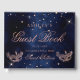 Recuerda este cumpleaños, fiesta o boda con tema de baile de máscaras con este agradecimiento moderno, chic y glamuroso con una máscara de máscara de brillo dorado rosa dibujada a mano con destellos de diamante de brillo dorado rosa en un fondo de acuarela azul marino oscuro. Un libro de invitados personalizado para combinar con su tema de Mardi Gras. ¡Agrega la foto de la cumpleañera!