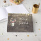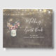 Libro de invitados sobre el boda del tarro de albañil floral de oro de malva rústica y vintage