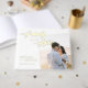 Captura la magia de tu día especial con nuestro Libro de Invitados del Boda de fotografía de la película "Happily Ever After Relieve metalizado dorado". Este elegante libro de visitas presenta un moderno guión de Relieve metalizado dorado con la frase "felizmente siempre después" en la parte superior izquierda, añadiendo un toque de romanticismo eterno. Personalízalo con sus nombres y fecha de boda en una hermosa combinación de sans-serif y serif cursiva en Relieve metalizado dorado, perfectamente posicionada en la parte inferior izquierda. La portada muestra la foto de tu pareja de retratos favorita en una orientación diagonal única contra un fondo blanco prístino, creando un conservador sofisticado y memorable. En la parte trasera del libro encontrarás un mensaje muy sincero en un estilo antiguo de serif con Relieve metalizado dorado, que añade un toque personal que apreciarán los clientes. La columna vertebral también está personalizada con texto de Relieve metalizado dorado, asegurando que cada detalle de su día especial se preserve elegantemente. Este libro de invitados es más que un libro de inicio de sesión; es un recuerdo atesorado que capta la alegría y el amor compartidos en tu día de boda. Perfecto para bodas, aniversarios o cualquier ocasión especial, este libro de visitas servirá como un recuerdo duradero que usted y sus invitados adorarán. Orden ahora para hacer su feliz siempre después de verdaderamente inolvidable.