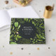 Invite a sus bodas invitados a compartir sus deseos y sabiduría con este libro botánico de moda en el que aparecen sus nombres y la fecha boda rodeados por una corona de hojas botánicas de color verde agua sobre un fondo oscuro y elegante de color negro. Personalice la columna vertebral con texto personalizado adicional. Diseñado para coordinar con nuestra colección de bodas de Midnight Garden.