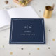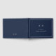 Este elegante y moderno libro de bodas presenta un sencillo diseño de texto minimalista azul marino oscuro y blanco, con un marco clásico en el borde. Añada sus iniciales o monograma para que sea completamente propio.