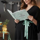 Este elegante Baby Shower Guest Book de Bats de Halloween con pinceladas pastel de Mint Spooky presenta un murciélago de bebé dibujado a mano en moda que vuela entre un cielo nocturno lleno de estrellas y lunas amarillas, todo con un agitado fondo de menta pastel y adornado con esquinas telaraña. En la parte trasera hay una foto. Personalice los detalles de su evento en la portada y el enlace.