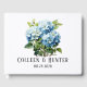 Hermosos florales de color azul hidrangea. Este conjunto de colecciones ofrece invitaciones y suministros para fiestas de boda.