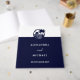 Disfrute de los recuerdos de su día especial con este libro de bodas costeros personalizado, con un diseño gráfico nítido de una palmera azul marino oscura, el sol naciente sobre el océano y pájaros pacíficos enmarcados en un círculo naval. La elegante obra de arte se enmarca en un fondo de moda de la marina y rayas blancas, creando una eterna estética boda de palmeras perfecta para una celebración marítima, tropical, de bodas en la playa o de verano. Diseñado con una elegante tipografía en blanco y un guión de caligrafía, este elegante keepsake le aporta un toque sofisticado a su decoración boda, al tiempo que ofrece a los huéspedes un hermoso lugar para dejar sus mensajes más sentidos.