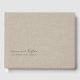 A modern minimalist wedding guest book with handwritten style script typography on a faux linen silver gray background.