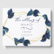 LIBRO DE INVITADOS | Moderno follaje de hojas azul añil profundo rodea un marco dorado multifacético: los destellos brillan en las hojas y una parte posterior azul añil profundo. Una combinación de caligrafía de letra moderna combinada con un diseño de texto minimalista y contemporáneo hace que sea una suite de boda de estilo tendencia. Diseño creado para TheBarefootBride™ por © WhimsicalArtwork™. Esto es parte de una colección de suites de papelería de boda con accesorios de boda a juego y también papelería para baby shower y otras ocasiones. No dude en hacernoslo saber si necesita ayuda.