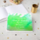 Un libro de bodas perfecto para un boda moderno con temática boho o artística, con un diseño original de pintura de color lima verde agua del artista Sacha Grossel. El texto es totalmente personalizable.