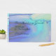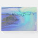 Un espléndido fondo abstracto azul del agua del océano y letras verde azuladas oscuras en un elegante emparejamiento de textos hacen de este un perfecto favor náutico gracias al diseño de su boda costero.