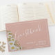 Bonito libro de visitas boda cuenta con acuarela color blanco esquina sobre fondo rosa negro con bloques de texto de personalizable blanco en fuentes modernas