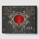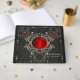 Momentos dorados de amor. El diseño desprende una elegancia oscura que llama la atención inmediatamente. Tiene un motivo circular central con un fondo rojo profundo que crea un ambiente apasionado y romántico. En el medio del círculo están las siluetas de una novia y un novio que adorablemente sostiene globos de corazón -un símbolo de amor y alegría. Dentro del círculo, el texto "Mr & Mrs." está estampado en una fuente elegante, celebrando la conexión de la pareja y la vida juntos. El círculo está enmarcado por delicados adornos dorados que le dan un toque de lujo al diseño. Estos detalles ornamentales atraen la atención y crean un aura opulento.