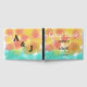 Tonos románticos en azul naranja amarillo rosa con toques de blanco para un boda moderno de verano. Personaliza con el nombre de la novia y el boda de citas en texto negro. Iniciales monogramadas en la parte posterior. Nuestra Historia de Amor está escrita en la columna vertebral de un libro en tipografía blanca contra fondo negro. Diseño original de obras de arte de TamiraZDesigns.