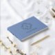 Un libro de invitados de boda cómodo y elegante. Este encantador libro boda de estilo francés en Relieve metalizado, cuenta con un bonito conjunto de fuentes contemporáneas y un monograma de pareja floral, con un bonito fondo azul polvoriento.