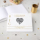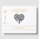 Elegante y moderno Bar Mitzvah Guestbook, con campos de plantilla de texto en tipografía de color oro para Monograma, Encabezado, Línea de etiquetas y nombres y fecha de boda. Simple árbol de corazón negro de diseño de vida.