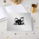 Imagen de diseño simple de un conjunto de tambores con iniciales. Añadir nombre y fecha en la columna vertebral