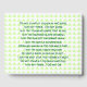El fondo y el marco de este libro de recuerdo son las rocas verdes, perfecto para una persona de ascendencia irlandesa. En la parte de atrás está el poema: "No te quedes en mi tumba y llores". No te quedes en mi tumba ni llores, no estoy allí... no duermo. Soy los miles de vientos que soplan... Soy el diamante de la nieve... soy la luz del sol en el grano madurado... soy la suave lluvia otoñal. Cuando te despiertas en la boca de la mañana, soy el veloz impulso de las aves gentiles en vuelo... Soy la estrella suave que brilla por la noche. No te quedes en mi tumba y llores... no estoy allí... no me muero.