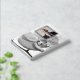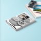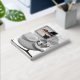 Personalice el elegante libro de invitados en memoria de los funerales de la orquídea blanca y negra para los asistentes a su celebración de la vida, despertar o homenaje a la muerte para firmar. Personalizar con el nombre de tu difunto ser querido, cumpleaños, día de la muerte y foto personal. Este elegante libro de personalizados con flores presenta una fotografía floral en blanco y negro de un bonito de flor de orquídea falaenopsis blanca en el tallo con fondo blanco y Relieve metalizado plateado.