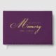 Fuente de escritura a mano de Relieve metalizado dorado específica del cliente, memorial, elegante, simple "In Loving memory", libro de invitados funerarios violeta. Disponible en oro, oro rosa y Relieve metalizado plateado.