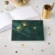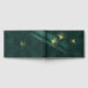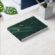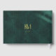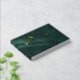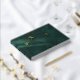 Esta interesante colección de bodas presenta efectos de iluminación intrigantes, follaje dorado, fondos de color verde esmeralda y utiliza un tipo de letra manuscrita para añadir un toque moderno. El Libro de Huéspedes bodas que se muestra aquí tiene un borde superior de hojas de ginkgo en Relieve metalizado dorado brillante, dándole una cualidad romántica y etérea. Agregue sus iniciales, nombres y fecha de boda utilizando la plantilla proporcionada. Busque ID881 para ver otras opciones de color y piezas de coordinación para esta colección de bodas única.