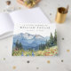 An elegant celebration of life, funeral guestbook, featuring a watercolor mountain floral scene. Designed by Thisisnotme©