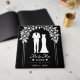 Celebrate your love with this beautiful Mr. and Mrs. wedding guestbook for a husband and wife. Designed with an elegant wedding dress and tuxedo under a floral wedding arch, this guestbook is perfect for family friends to leave heartfelt messages to the newlyweds. Add the bride and groom's wedding details for a personalized touch.