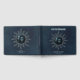 Mystical connection, mystical woman and the lion. The focus is on the woman's face, which is decorated with complex, luminous patterns. These patterns radiate in vibrant shades of blue and blue-green, giving the image a cool, ethereal atmosphere. At the top of her face is a stylized, mystical symbol on her forehead. The head of a lion gradually merges into her hair, its mane seamlessly integrating with the woman's hair. The lion's head symbolizes strength, courage, and wisdom, while also acting as a protective spirit.