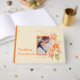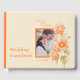 Las hermosas flores naranjas adornan este libro de bodas y realzan su foto favorita.