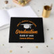 Este moderno libro de naranjas y personalizados negros para estudiantes de posgrado presenta su nombre de instituto o universidad para la clase de 2025. Personalizar con tu año de graduación bajo el guión manuscrito de la moda y gorra blanca de grado para un gran regalo personalizado de obsequio de libro de visitas de grado.