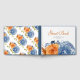 Libro De Visitas Naranja quemado azul de la marina Boda floral oto