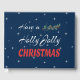 Disponer de un diseño de texto para Navidades de Holly Jolly con estrellas, bayas, velas y decoración de siempre verde invernal sobre fondo azul oscuro