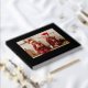 Navidades Recuerdos Real Relieve metalizado Familia Foto Nombres personalizados Libros de invitados presenta una elegante tipografía moderna de escritura dorada con el año, nombre de familia y texto personalizado como "Recuerdos Navidades" con su foto favorita y una foto adicional al revés. Añade el texto de tu personalizado en la columna vertebral del libro de invitados. Creado por Evco Studio www.zazzle.com/store/evcostudio