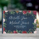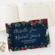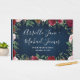 El Navy Marsala Country Rustic Boda Guest Book presenta un marco rústico de madera azul marino con vegetación, rosas y otros elementos florales en tonos rosa rosa pastel, marsala, borgoña y más.