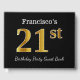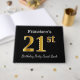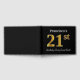 El diseño de este libro de huéspedes incluye el número ordinal 21 con un aspecto de imitación de oro. También cuenta con un nombre personalizado y un fondo de color negro. Se podría usar en un fiesta para alguien que celebra su 21º cumpleaños. [~Z0000054]