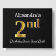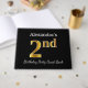 El diseño de este libro de huéspedes incluye el número ordinal "2º" con un aspecto falso dorado. También incluye un nombre personalizado y un fondo de color negro. Se podría usar en un fiesta para alguien que celebra su segundo cumpleaños. [~Z0000054]