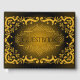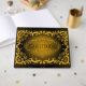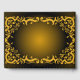 Negro y dorado con un borde estampado y un fondo degradado con un monograma.
