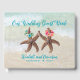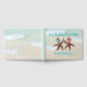 Portada del libro de invitadas de dos novias estelares con tres líneas de texto personalizado. El fondo de la playa y la estrella de mar marrón con flores en azul y verde y rosa y naranja.