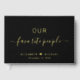 Elegante libro de boda negro con tu elección de oro, plata o Relieve metalizado de oro rosa, "Nuestro pueblo favorito" en una simple tipografía y un guión de moda con chispas, tus nombres románticamente unidos por un corazón y tu fecha boda. Personalizar tu título en la columna vertebral.