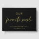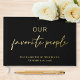 Moda libro de boda negro que incluye oro real, plata o Relieve metalizado de oro rosa, "Nuestro pueblo favorito" en una mezcla de tipografía simple y escritura moderna, sus nombres en la elegante tipografía clásica serif y su fecha boda. Personalizar tu título en la columna vertebral y agrega una foto de compromiso favorita en la parte posterior (o borra).