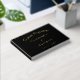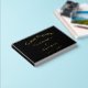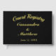 Patrón floral brillante en la parte posterior del libro de invitados del registro. Los nombres de la novia y del novio con la fecha y el registro de invitados están escritos en el frente con un fondo negro. Personalice el texto para su información.