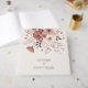 Disfrute del amor y los recuerdos de su día especial con este Relieve metalizado dorado de Boda floral rosado moderno y denso. Este libro de huéspedes, adornado con suaves flores de color negro y acentos de Relieve metalizado brillantes, le da un toque romántico y refinado a su decoración boda. Perfecto para los bodas boho, románticos o de la temática del jardín, invita a los huéspedes a dejar notas sentidas y buenos deseos en estilo. Un recuerdo atemporal que apreciarán en los próximos años.