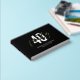 Un libro de fiestas de 40 años con un elegante fondo negro que se puede cambiar a cualquier color, el título "cuarenta", más el nombre y la fecha en Relieve metalizado de oro real. Esto se puede cambiar a oro o plata rosa.