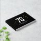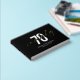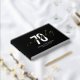 El moderno libro de invitados para la fiesta de cumpleaños 70 presenta un elegante fondo negro que se puede cambiar a cualquier color, el título "setenta", más el nombre y la fecha en papel dorado real. Esto se puede cambiar a oro o plata rosa.